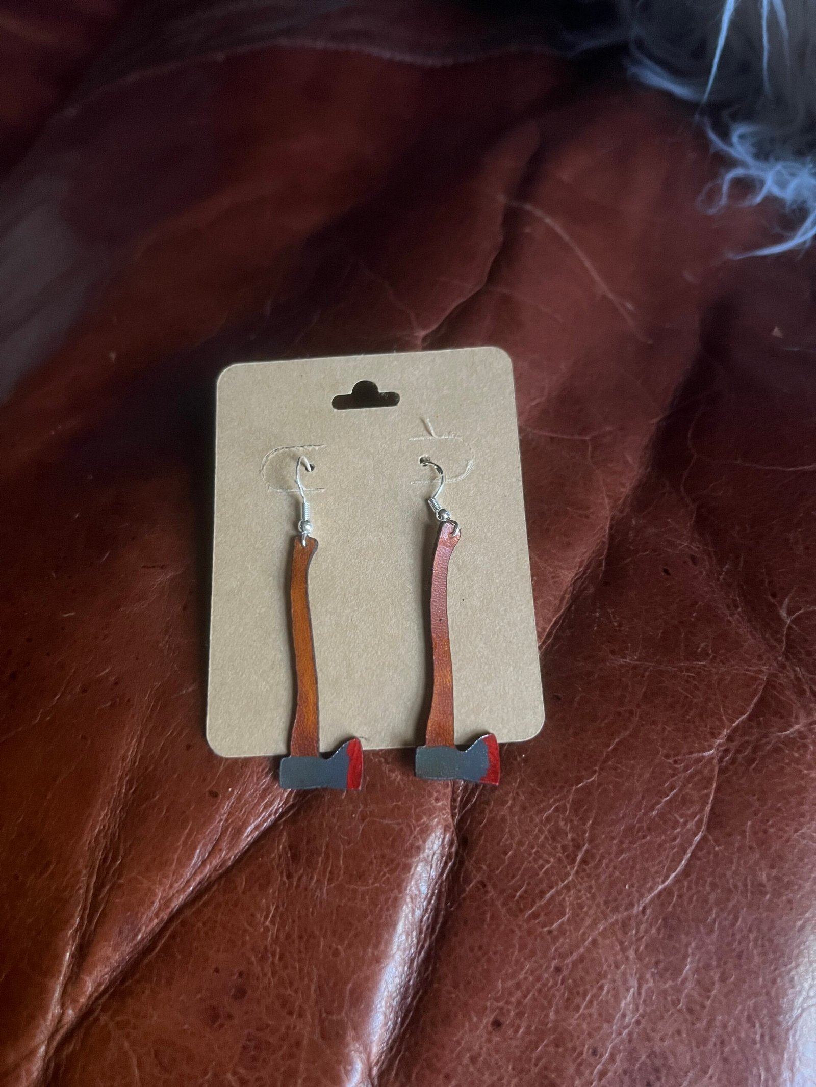 Wood handle axe with blood tip earrings