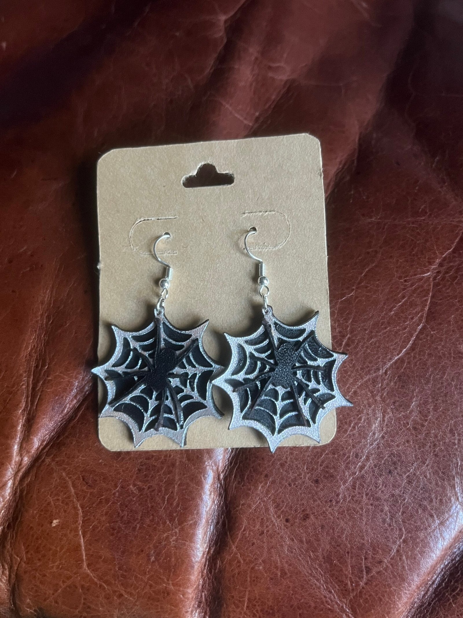 Multi-layer black and silver spider web earrings
